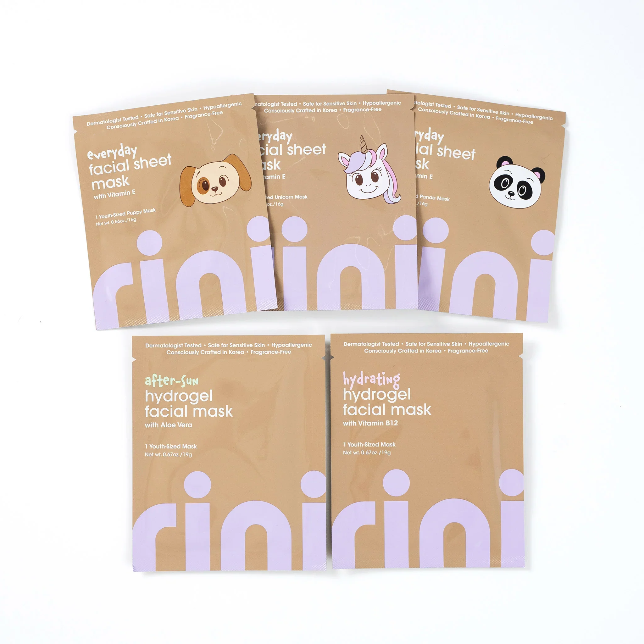 The brand’s lineup includes a hydrating mask infused with Vitamin B12 to nourish the skin, an after-sun mask with aloe vera and chamomile to soothe post-play stress, and everyday masks with Vitamin E that come in dog, panda, or unicorn designs—all aimed at calming and hydrating after a day outside.
